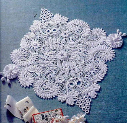Durante a Grande Fome na Irlanda, o crochê se tornou sustento para famílias inteiras. A renda irlandesa era feita em cooperativas e ensinada em escolas. A técnica ganhou o mundo e é marcada por desenhos florais elaborados e tridimensionais.